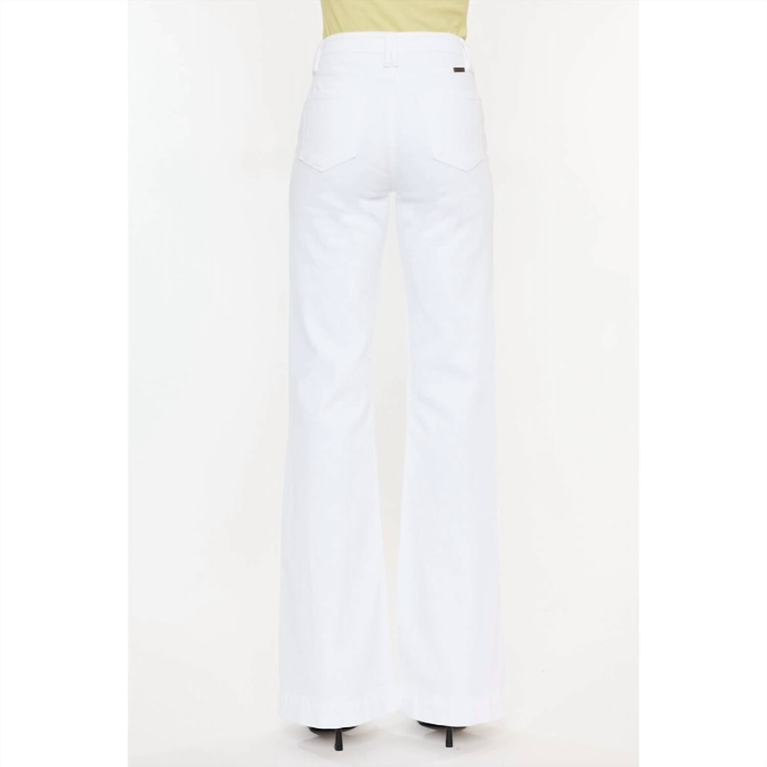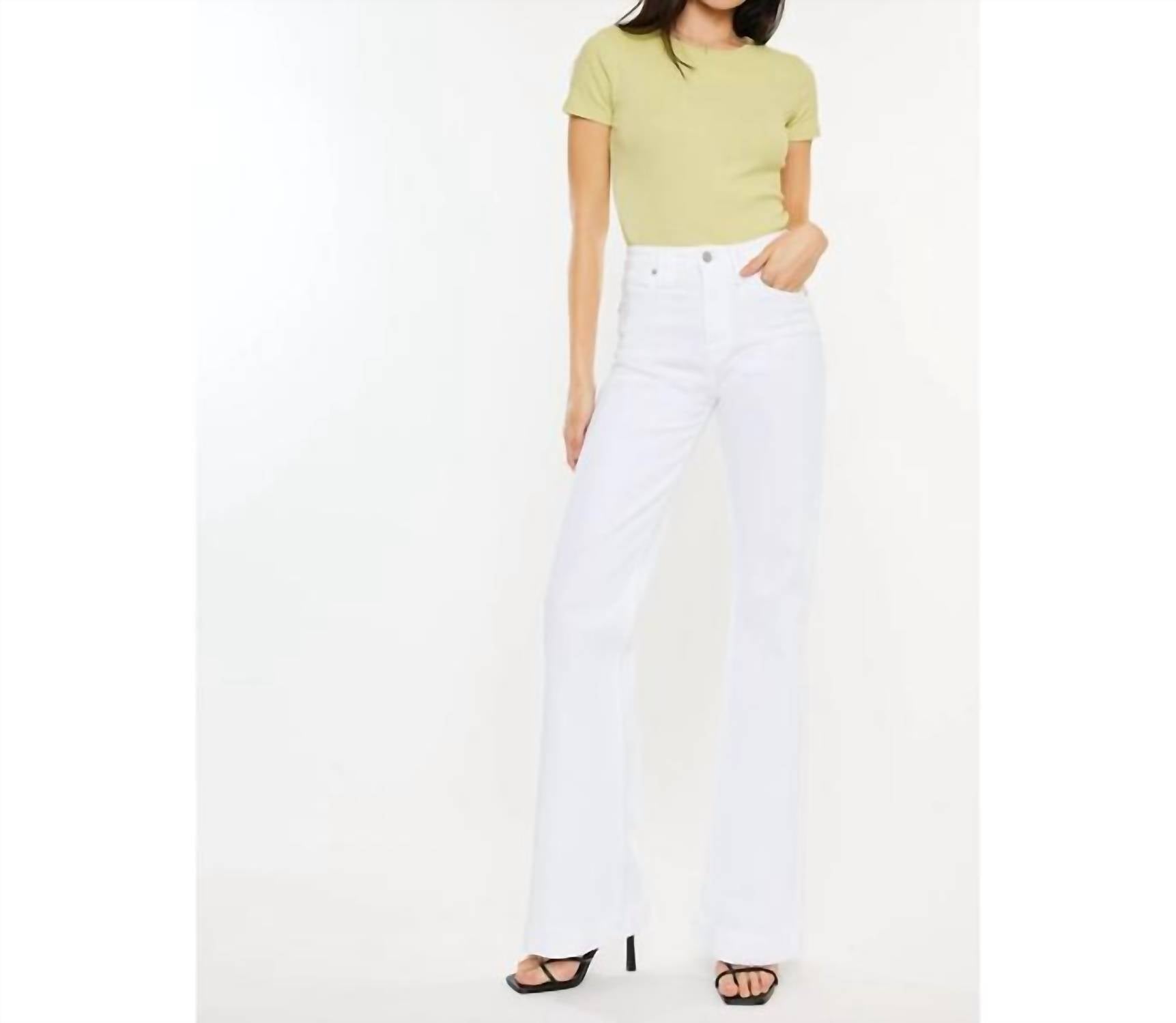 Uma silhueta elegante e surpreendentemente versátil. Apresentamos a Calça Jeans Holly High Rise Wide Flare da KanCan, uma adição chique ao seu guarda-roupa em branco texturizado. Confeccionada em algodão macio, esta calça jeans apresenta modelagem ampla e cintura alta para um caimento perfeito. Fechamento: Botão. Cuidados: Lavar à máquina. Ideal para elevar o seu look do dia a dia.