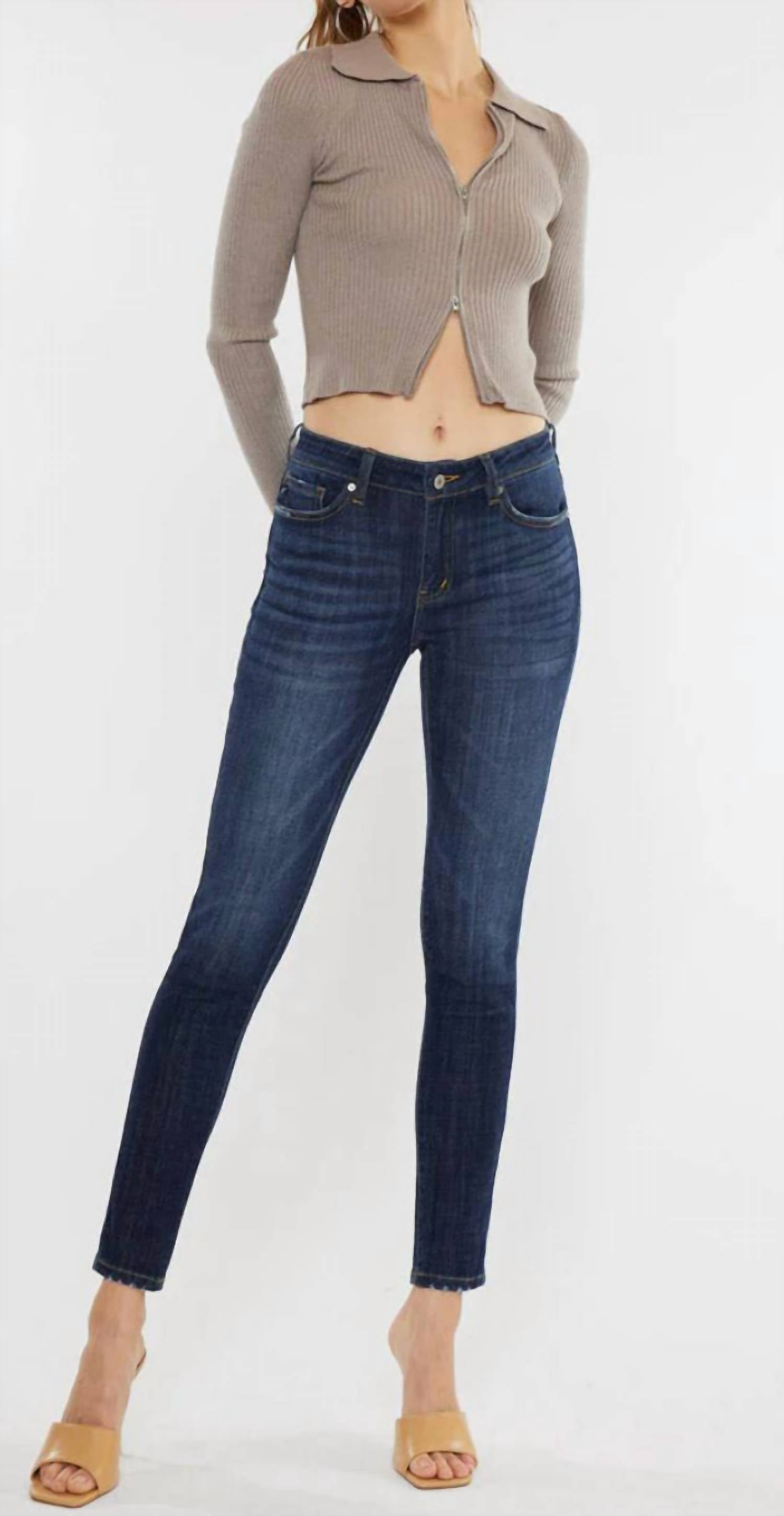 Everyone needs a good pair of skinny jeans and this is a style you'll keep reaching for no matter the season. Introducing the KanCan Mid Rise Super Skinny Jeans, a stylish addition to your wardrobe in a sophisticated Loh color. With a perfect blend of 71.7% Cotton, 17.75% Polyester, 9.5% Rayon, and 1% Spandex, these jeans offer a slim fit and comfortable stretch. Featuring a mid-rise waist of 8.5 inches, skinny legs, and a dark wash, they complement any dinner party or holiday look with ease. Closure: Zip closure. Care: Machine wash and tumble dry for easy maintenance, making these jeans a practical yet chic choice for spring wardrobes.