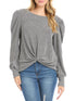 Karen Kane Top de malha metálica com torção frontal e manga bufante, prateado metálico, tamanho G