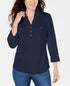 Camisa polo feminina Karen Scott manga 3/4 azul tamanho pequeno extragrande