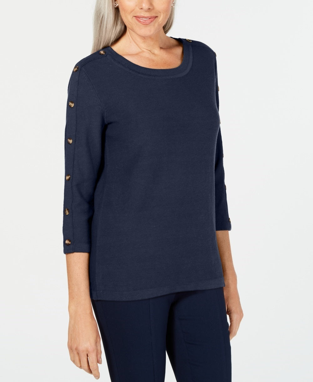 Karen Scott Suéter Feminino Manga 3/4 Azul Tamanho P