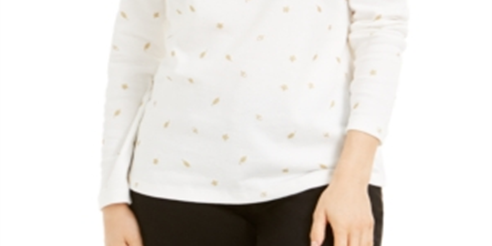 Karen Scott Suéter Feminino de Gola Alta com Cor de Outono, Branco, Tamanho XS