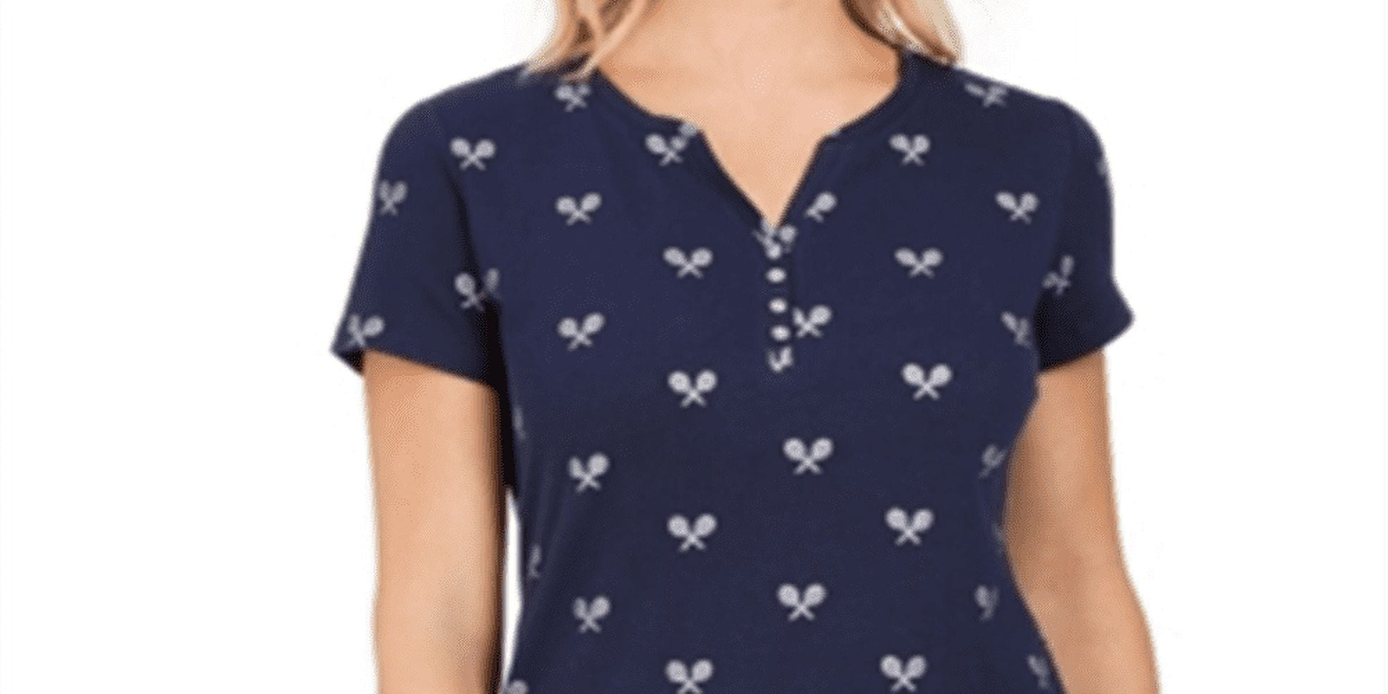 Karen Scott Blusa Henley Feminina Azul Perfect Swing Tamanho Médio