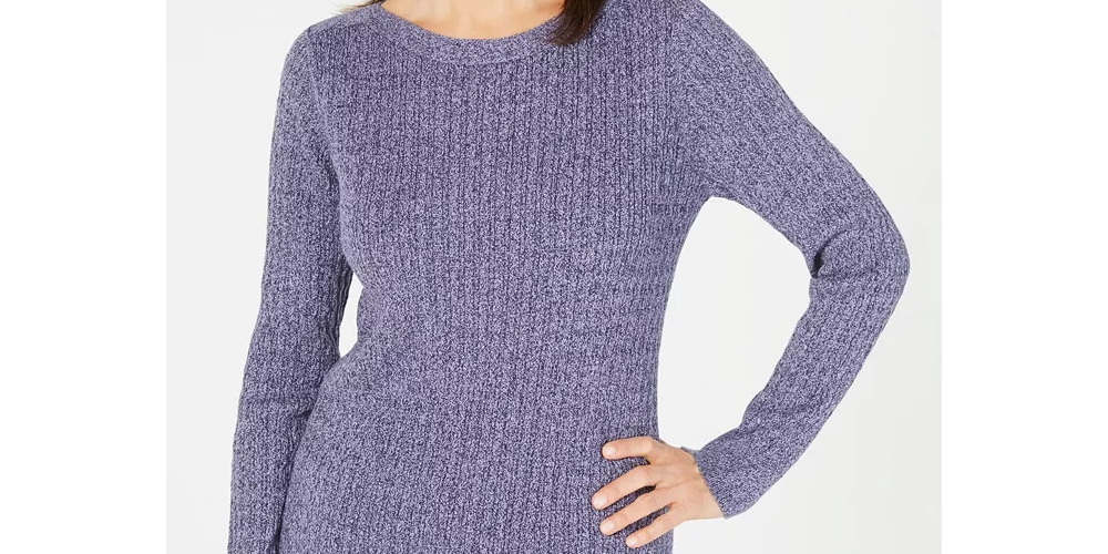 Karen Scott Suéter de algodão com gola canoa feminino, azul, tamanho XX-G