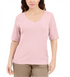 Blusa feminina Karen Scott com decote em V e detalhes em botões, rosa, tamanho médio