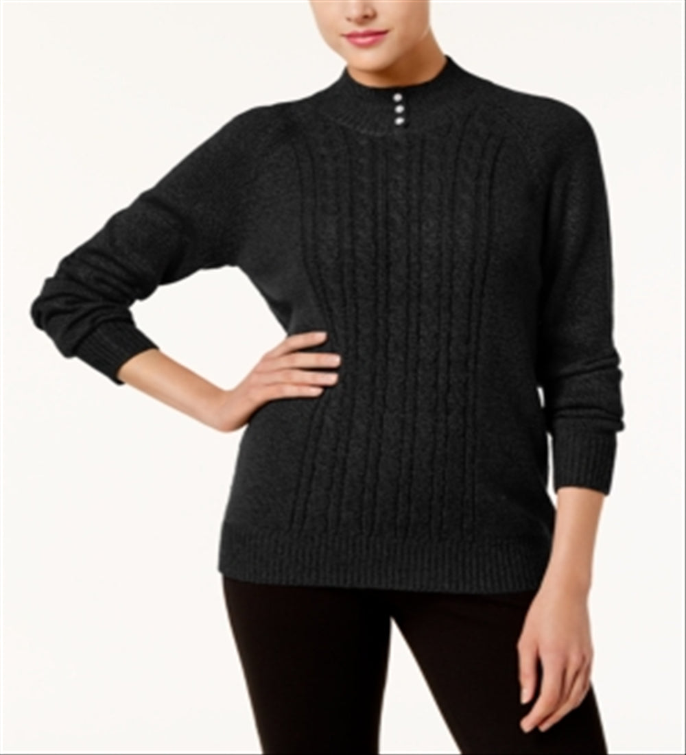 Karen Scott Suéter Feminino Gola Falsa com Acabamento em Botões Preto Tamanho XXG