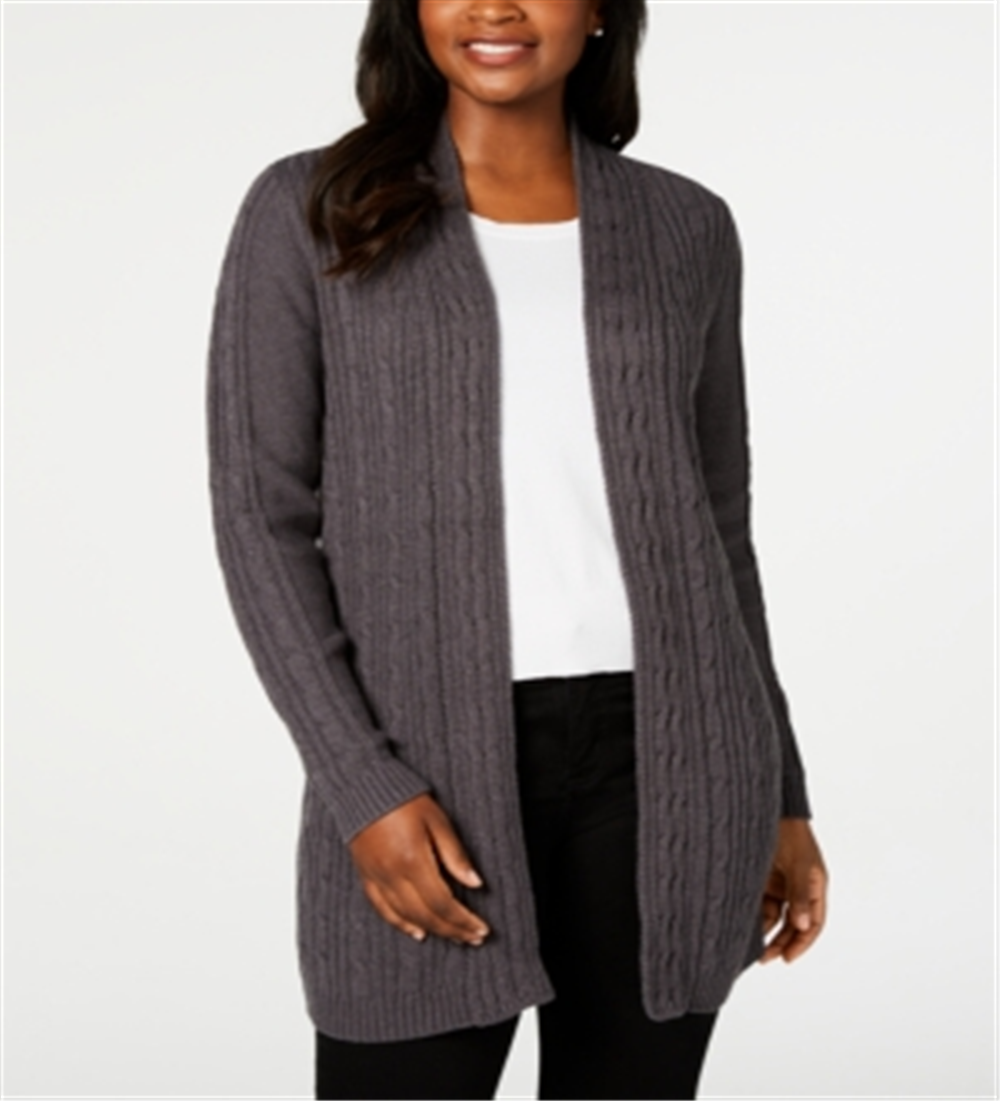 A camada definitiva deve ser elegante | versátil e divertida | O cardigan de algodão aberto de Karen Scott com detalhes em tricô trançado veste perfeitamente todos os três | Acertando no ponto certo no meio da coxa | este estilo de algodão atravessa as estações com facilidade
