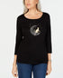 Camiseta feminina Karen Scott de algodão com contas, preta, tamanho pequeno e pequeno