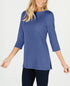 Karen Scott Suéter Feminino de Algodão com Gola Canoa e Manga 3/4 Azul Tamanho P