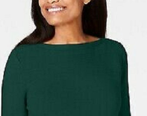 Karen Scott Suéter Feminino de Algodão com Gola Canoa Verde Tamanho Grande