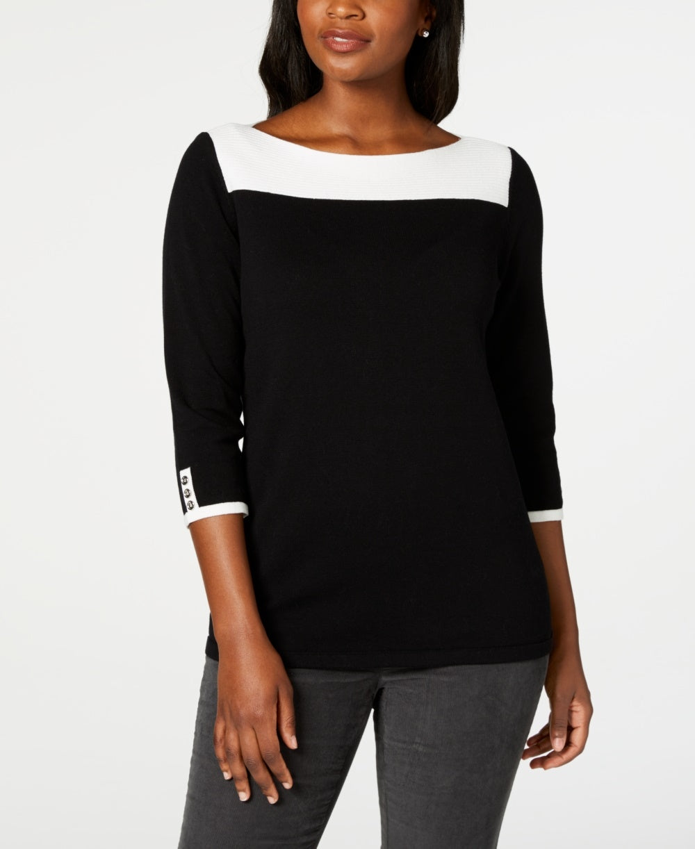 Suéter feminino Karen Scott de algodão com blocos de cores, preto, tamanho X-S