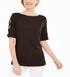 Blusa feminina Karen Scott de algodão com mangas recortadas, marrom, tamanho pequeno