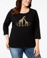 Camiseta feminina Karen Scott de algodão com estampa de girafa, preta, tamanho extra grande