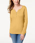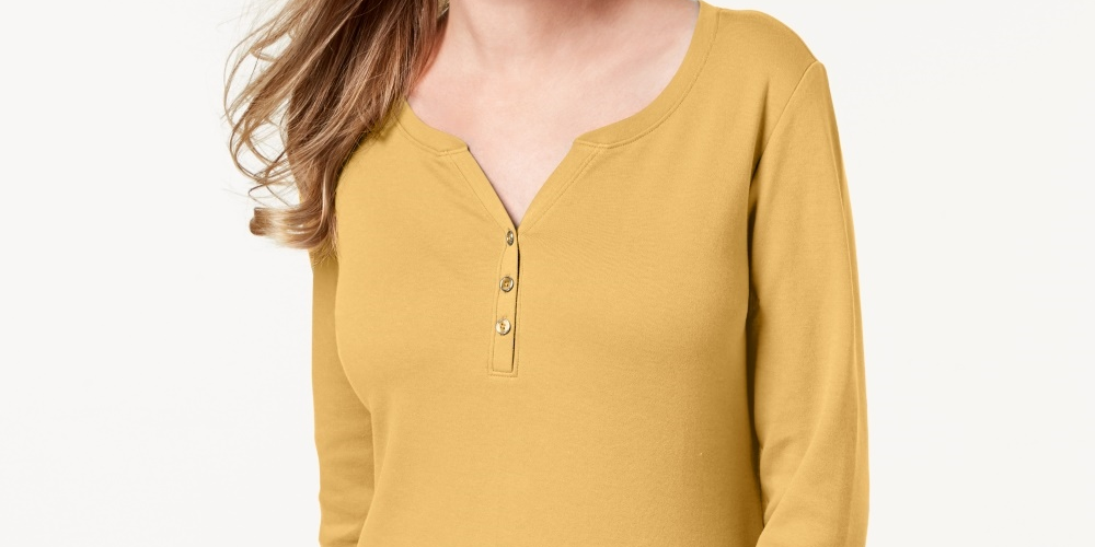 Karen Scott Top Henley de Algodão Feminino Bege Cáqui Tamanho P
