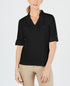 Karen Scott Top Feminino de Algodão Johnny-Collar Preto Tamanho Médio