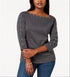Enfeites de decote coração e tachas adicionam um estilo charmoso a esta blusa de algodão confortável da Karen Scott. | Caimento relaxado; comprimento no quadril; comprimento aproximado de 27 | Devido ao tamanho generoso | sugerimos um tamanho menor para um ajuste perfeito | Decote coração com detalhes de decote coração e tachas | Mangas 3/4
