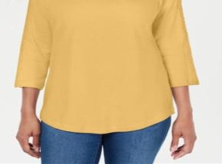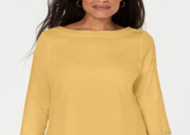 Blusa feminina Karen Scott com acabamento em renda e algodão, tamanho pequeno, amarela