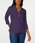 Camisa feminina Karen Scott de algodão com cadarço, roxa, tamanho X-S