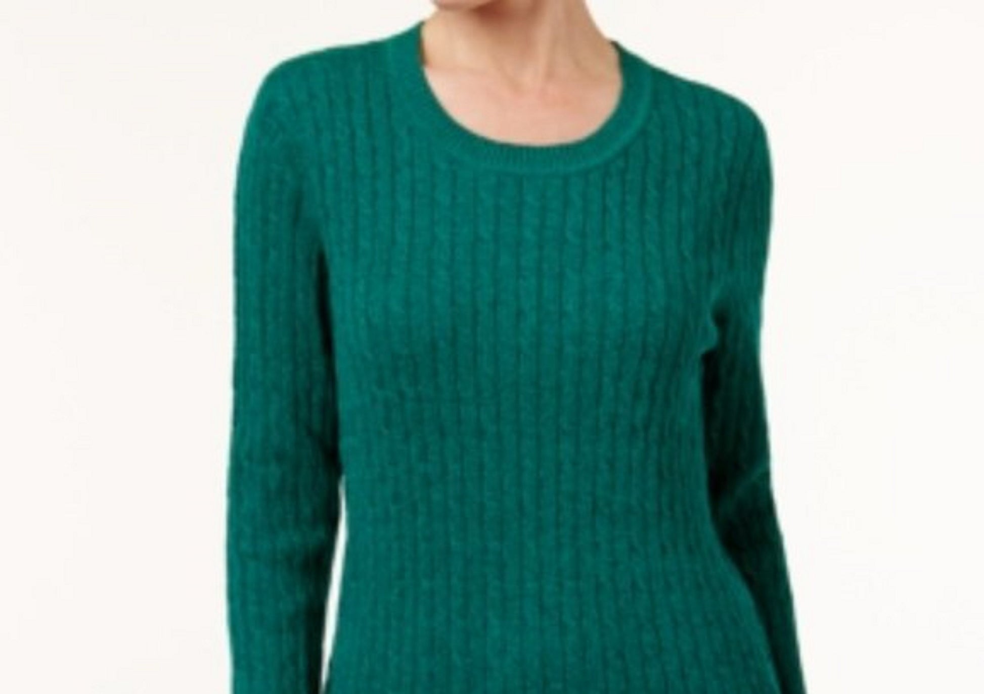 Karen Scott Suéter Feminino de Algodão e Malha Marmorizada Verde Escuro Tamanho Grande