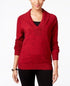 Karen Scott Suéter Feminino de Algodão Marmorizado com Gola Xale Vermelho Tamanho Grande