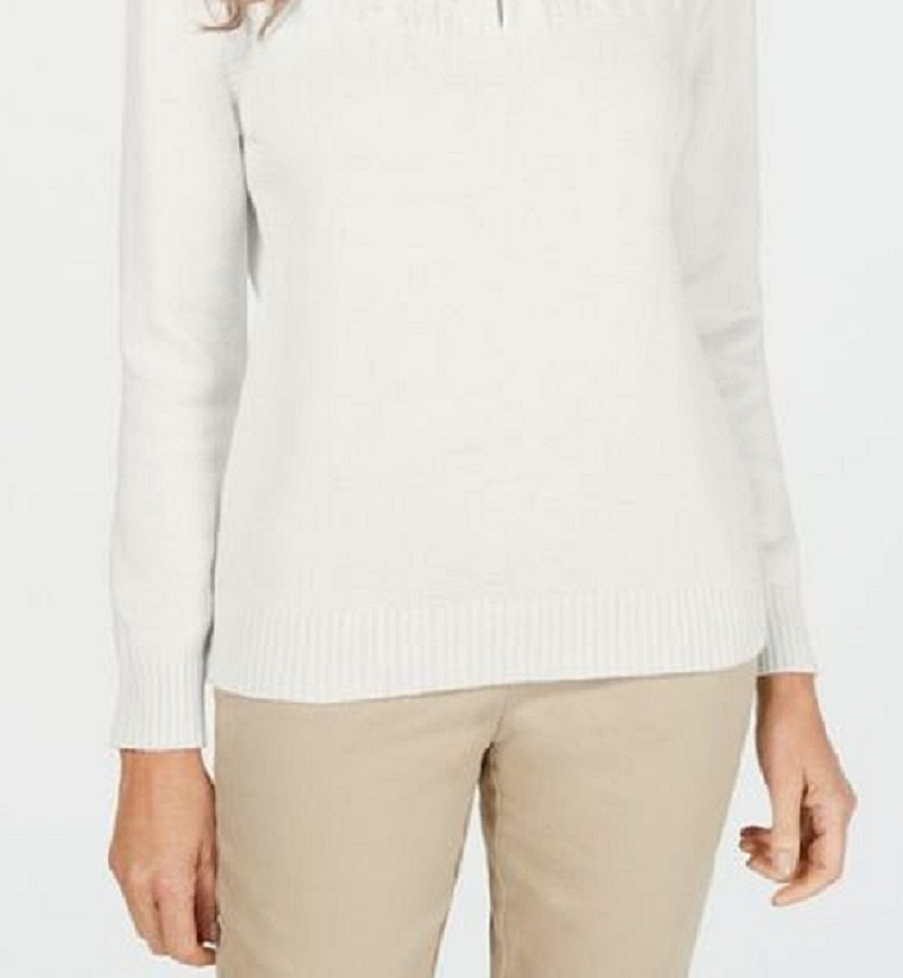 Karen Scott Suéter Feminino de Algodão com Gola Falsa, Branco, Tamanho Pequeno