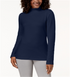 Blusa de gola alta feminina Karen Scott de algodão, azul, tamanho pequeno