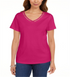 Camiseta feminina Karen Scott de algodão com decote em V e acabamento aberto, rosa, tamanho pequeno