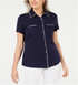 Blusa feminina Karen Scott com botões e debrum de algodão, azul, tamanho médio