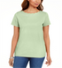 Camiseta feminina Karen Scott de algodão com gola recortada, verde, tamanho médio