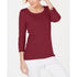 Blusa de algodão feminina Karen Scott com decote redondo, tamanho vinho, pequeno GG