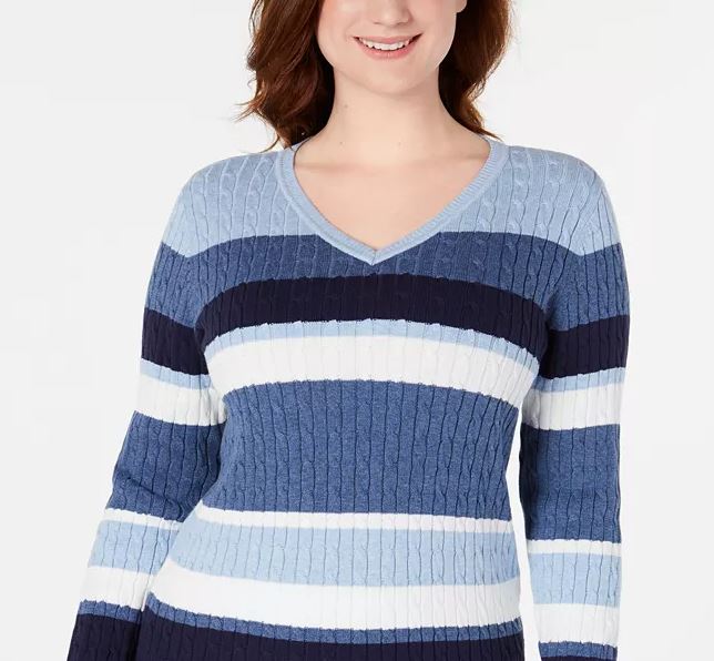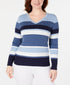 Karen Scott Suéter Feminino Listrado de Algodão em Tricô Azul Tamanho Pequeno Médio