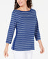 Blusa feminina Karen Scott de algodão listrada com bainha ventilada, azul, tamanho pequeno