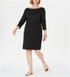 Vestido feminino Karen Scott de algodão com tachas e manga 3/4, preto, tamanho XS