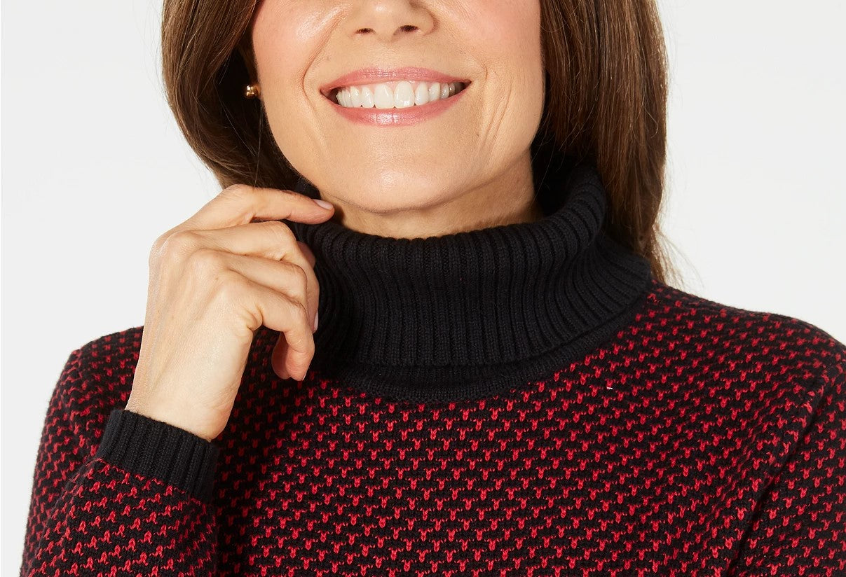 Karen Scott Suéter Feminino de Algodão com Gola Alta Vermelho Tamanho Médio