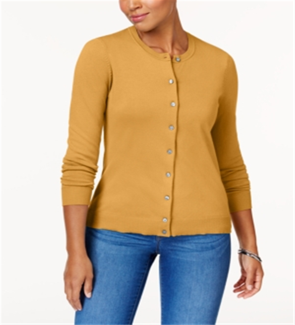 Karen Scott Cardigan Feminino Gola Redonda Amarelo Tamanho P