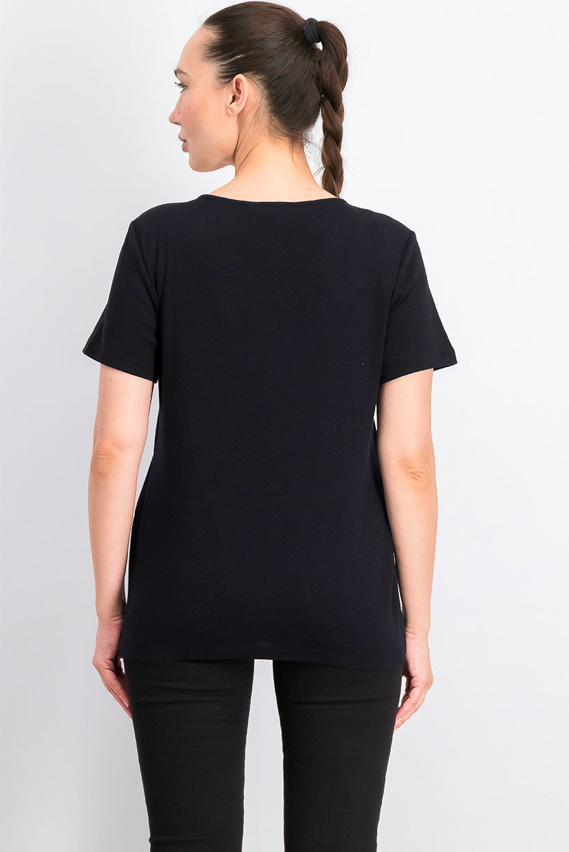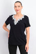 Blusa feminina Karen Scott com decote aberto e acabamento em crochê, preta, tamanho pequeno