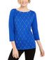 Karen Scott Blusa de algodão com manga 3/4 e detalhes embelezados, azul, tamanho pequeno G