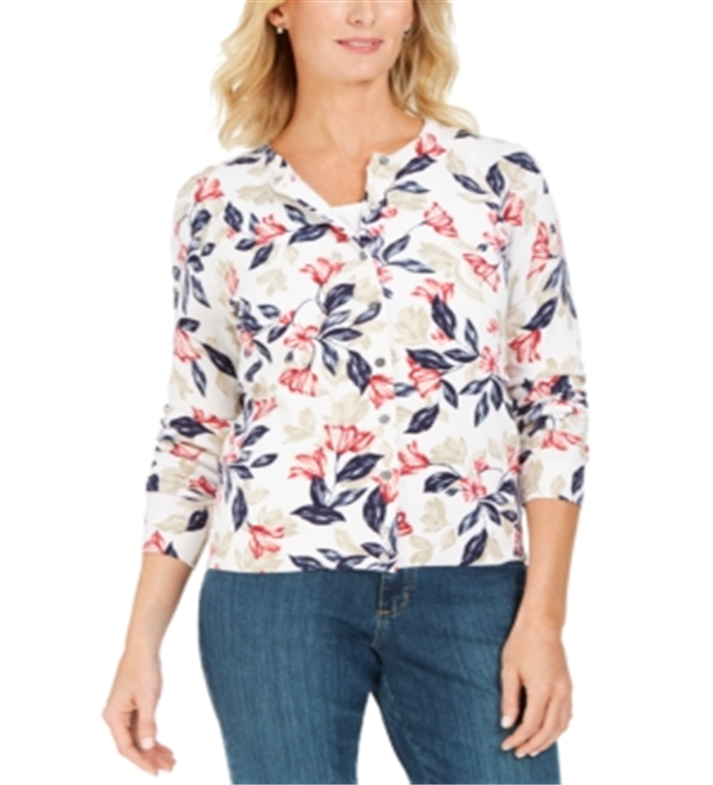 Karen Scott Cardigan Feminino Estampado Floral Vermelho Tamanho P