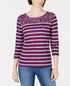 Karen Scott Blusa Listrada Floral Yoke Feminina Vermelha Tamanho P
