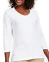 Karen Scott mantém você chique e casual para o estilo do dia a dia com este top 100% algodão com mangas 3/4 e acabamento com ilhós no decote