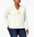 Karen Scott Suéter Feminino de Algodão com Gola V e Hardware, Branco, Tamanho Médio