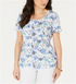 Camiseta feminina Karen Scott com decote redondo e bolinhas, tamanho médio, azul