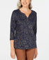 Blusa feminina Karen Scott com estampa de folhas e manga 3/4, tamanho azul marinho, pequena e pequena