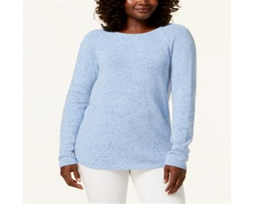 Karen Scott Suéter Feminino Manga Longa Bainha Curva Azul Tamanho Pequeno G