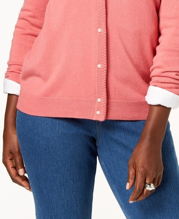Karen Scott Cardigan Feminino Luxsoft Botão Rosa Tamanho Pequeno