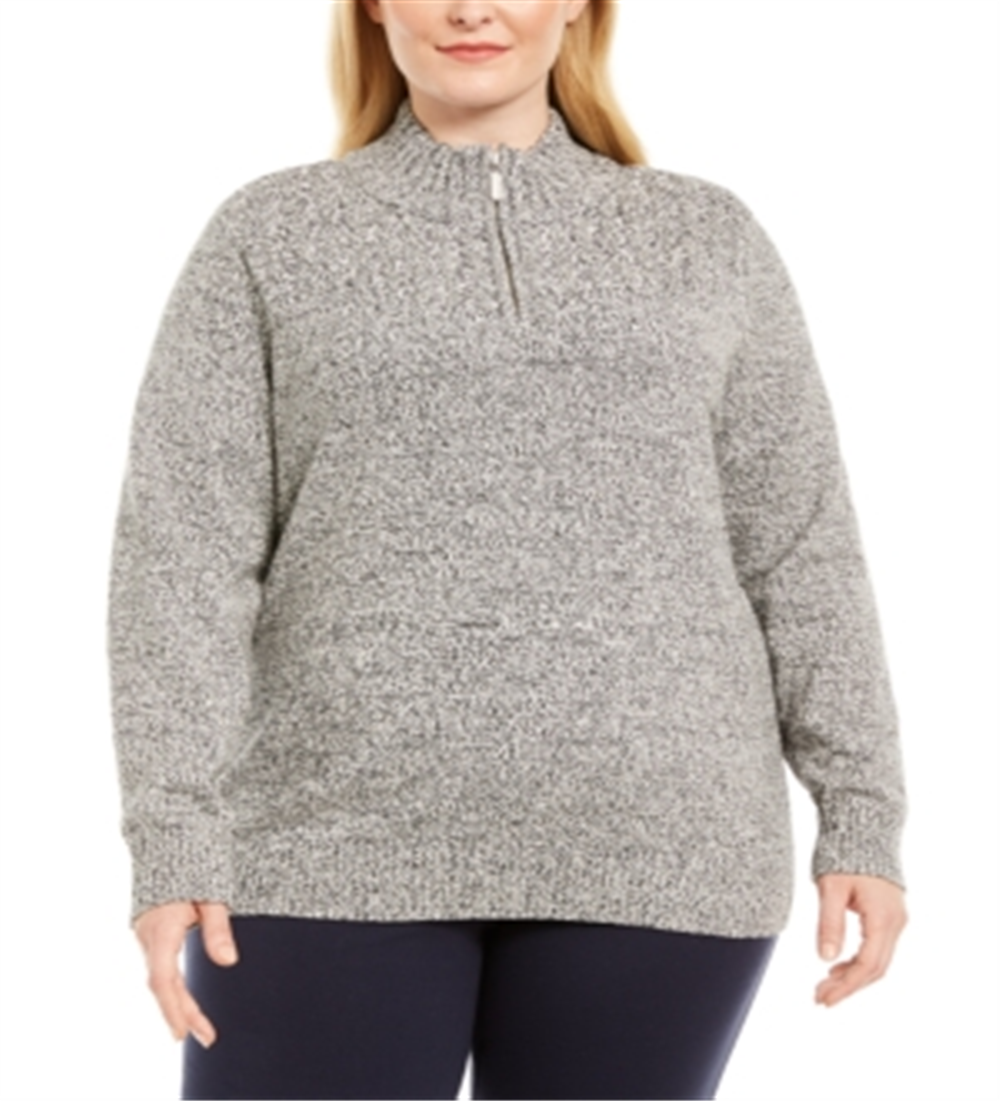 Karen Scott Suéter Feminino de Algodão Marrom com Zíper 1/4 e Gola Simulada, Tamanho 1X