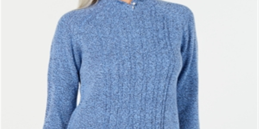 Karen Scott Suéter Feminino de Tricô com Gola Falsa Azul Tamanho Pequeno P