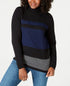 Karen Scott Suéter Feminino Petite Colorblocked Algodão Gola Alta Azul Tamanho Pequeno Grande