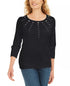 Karen Scott Top Feminino Petite Algodão com Ilhós e Ferragens Preto Tamanho Petite S