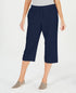 Costura interna aprox.; 19 | Cintura frontal; aprox. 10; cintura traseira; aprox. 14-1/4; perna reta; curto na metade da panturrilha | Projetado para se ajustar e valorizar pessoas de 1,62 m ou menos | Estilo pull-on; cordão na cintura | Bolsos laterais na costura